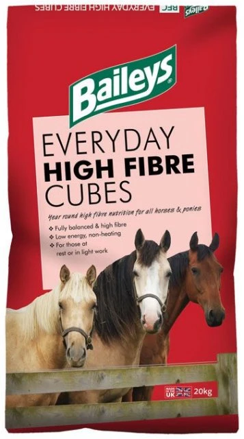 Everyday High Fibre Cubes are the perfect year-round choice for horses and ponies whose energy requirements are low and should help maintain condition without causing excitability. They are ideal fed from the ground, to groups of horses, or even from boredom balls to those who are stabled for long periods. Prepared to the same high standards as the rest of Baileys range, Everyday High Fibre Cubes provide straight forward essential nutrition and represent great value.