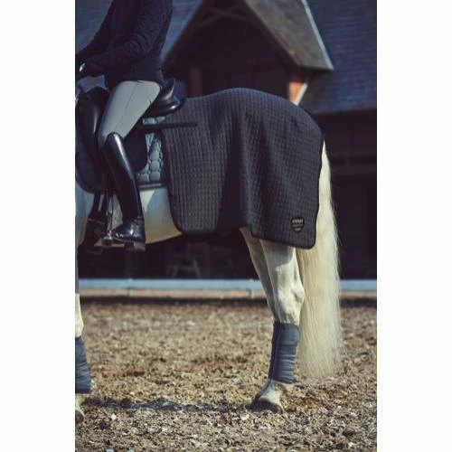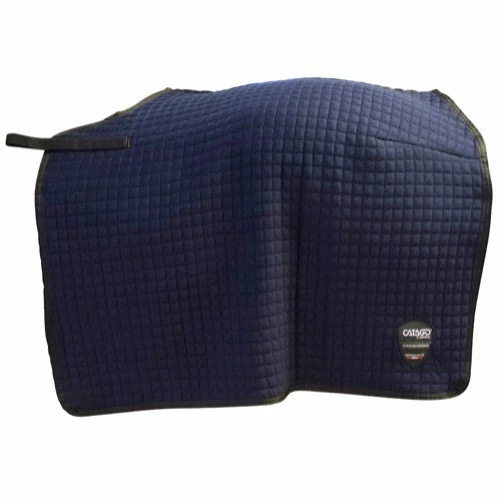 High quality exercise sheet made of quilted cooler fabric. The CATAGO exercise sheet is highly functional as the fabric keeps the back of the horse warm while beeing breahable and wicks away moisture and excess heat. The exercise sheet has velcro closures to be attach to the saddle and a tail stap to maintain the correct position of the rug during riding. Material:100% Acryllic with wool effect