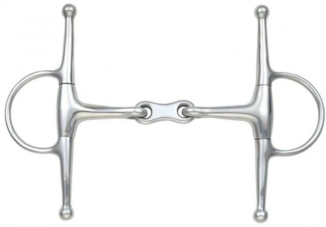 The French link in this bit means pressure is applied to both sides of the tongue. Some horses with low palates may find this bit more comfortable as it is unlikely to make contact with the palate when the bit comes in to action. The full cheeks assist with steering. Mouthpiece thickness: 14mm. Cheek height: 165mm.