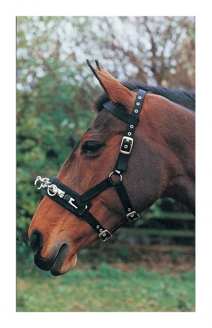 Manufactured in 1” wide polypropylene web with strong metal nose fittings and padded base. 3 buckle, fully adjustable on head, nose and throat. Featuring a brow band attachment.