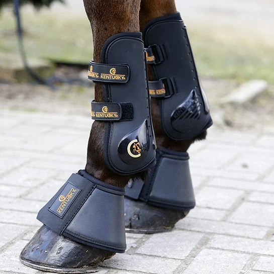 The Kentucky Horsewear Leather Overreach Boots provide excellent shock absorption and maximum protection. They offer extra protection for injuries that can be caused by overreaching. The Leather Overreach Boots are very strong, flexible and comfortable. To some they may appear to be slightly too small, but this is not the case. They are shaped for a perfect fit, safety and stability. The Leather Overreach Boots incorporate a tough, hardwearing 100% waterproof PVC leather. With their expert design they are perfect for all disciplines.